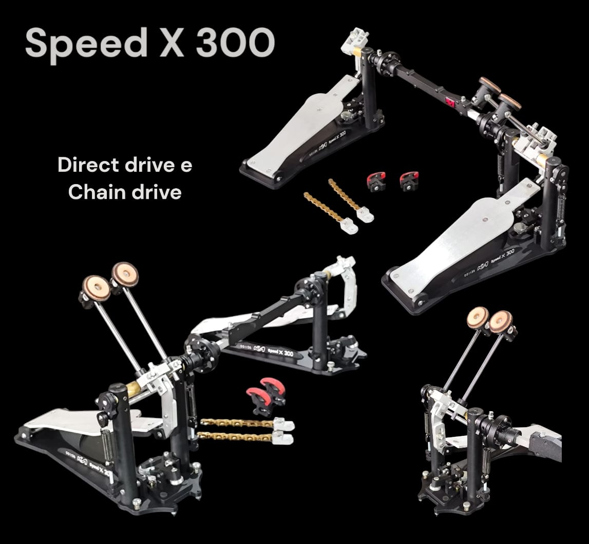 Este modelo acompanha polia de corrente ,onde você poderá fazer a troca da corrente para a barra maciça que liga a sapata a polia superior, famoso Direct drive. Então você terá um pedal que utiliza corrente e Direct drive em um só pedal.